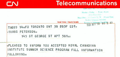 My application to participate in the Royal Canadian Institute's Summer Science Program had been accepted, and I became one of 35 high-school participants from across Canada in this six-week program focusing on mathematics and science.