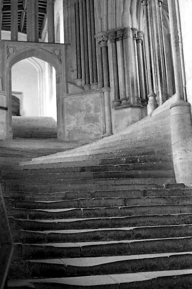 One of my favorite examples from my own travels is a stone staircase in Wells Cathedral, England, where centuries of foot traffic have worn characteristic concavities into the steps.