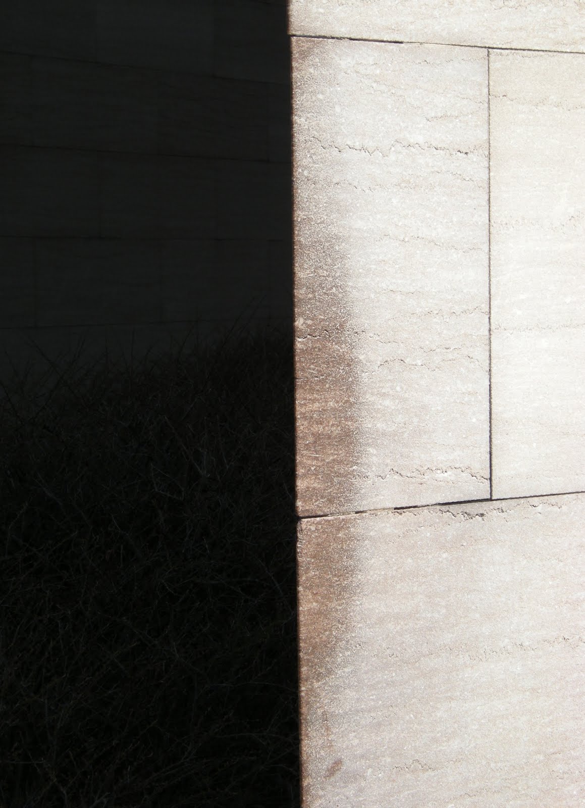One particularly sharp corner, visible to the right of the East Building's H-shaped, west-facing façade, has attracted a lot of attention. There, two walls meet at 19 degrees to form the apex of a narrow triangle. This 19-degree "fin" rises 107 feet from ground to roofline. If you look closely at the corner, you'll see a smudge darkening the lavender-pink marble.