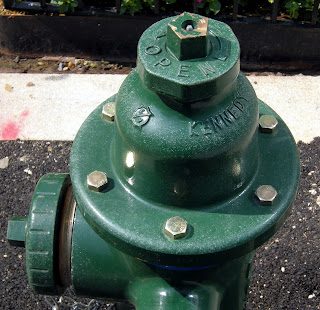 Notice that although the operating nut at the top of the hydrant (along with others on the side) to control water flow is pentagonal, the nuts holding the hydrant together are hexagonal.